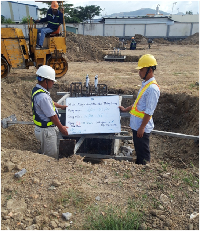 Mặc dù chịu ảnh hưởng của thời tiết nhưng chỉ trong thời gian ngắn công tác thi công móng đã hoàn thành để cho việc lắp dựng khung kèo thép