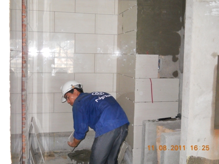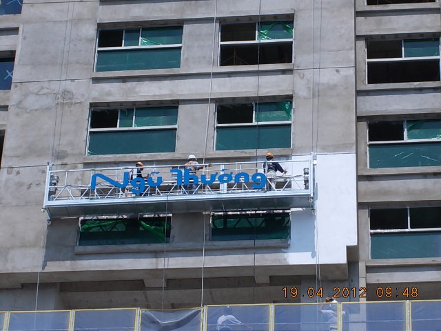 Sau khi qua được trục trặc về vật liệu sơn, công tác sơn ngoài đã được bắt đầu.