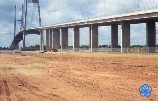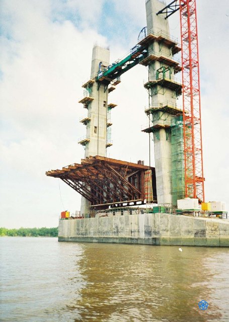 Có lẽ mọi trục trặc về thiết kế đã ở lại với các kế hoạch không thành trước đây, vì vậy mà công tác thi công hầu như không gặp một trở ngại nào đáng kể. Ngay từ những công tác đầu tiên như khoan cọc cũng tiến triển tốt do sử dụng các thiết bị phù hợp mang đến từ Đức, đến các bộ ván khuôn trượt để làm cầu chính được sản xuất tại Việt Nam cũng hoạt động rất hoàn hảo.