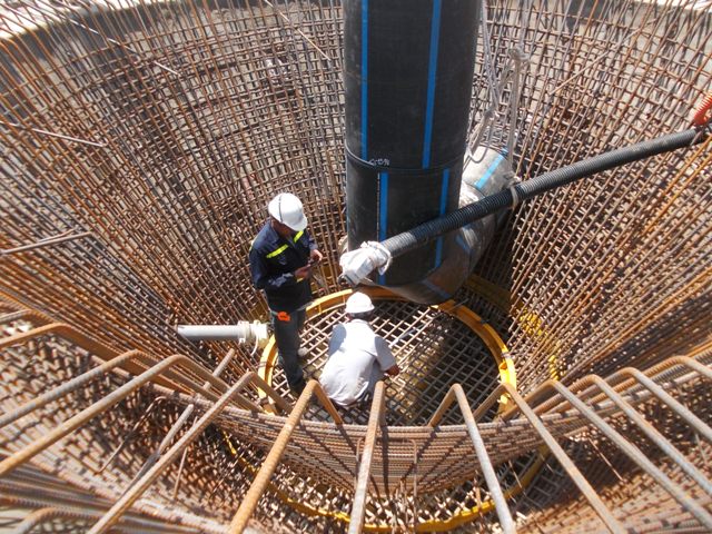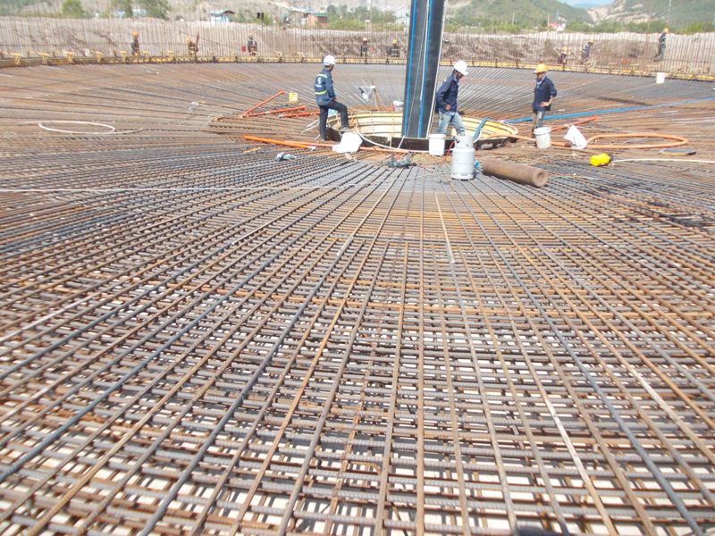 Cốt thép cho đáy của một trong 4 bể lắng cuối