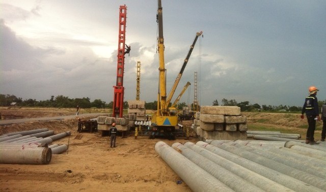 Bơm cát nâng cao độ nền nhà máy