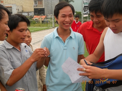 Nhưng các đội bạn ơi ! nhìn vào danh sách tuyển thủ của các bạn toàn là dân chân yếu tay mềm nên chúng tôi dám chắc là 99 % nếu tham dự chúng tôi sẽ đoạt cúp thôi (trừ khi các bạn mua trọng tài hoăc có đội ngũ ủng hộ viên chân dài quá tuyệt làm chúng tôi mất tập trung), vì cho các bạn biết chúng tôi là những hảo thủ với chuyên nghành là cn khoan cọc nhồi, địa chất, căng cáp DUL, bt, cofa, bê tông, vận hành cơ giới… hàng ngày làm việc trên ct trải dài gần 3 km, sau giờ làm việc chúng tôi chỉ có giải trí bằng thể thao (vì không còn món nào khác) và thường xuyên là bóng đá. Nói thể đủ để các bạn thấy chúng tôi là những nhà vô địch rồi đấy nhé.