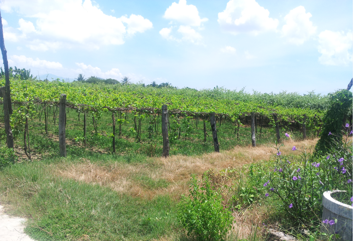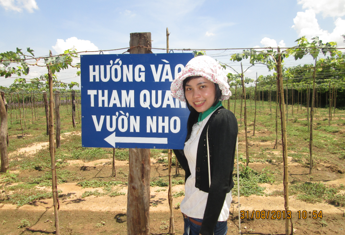 Ở đây nhìn vườn nho dưới cái nắng chang chang dường như làm người tham quan thấy choáng giữa màu nắng và màu xanh của những trái nho to mộng.