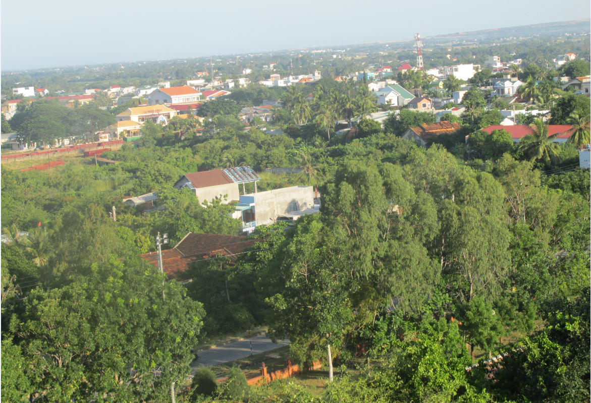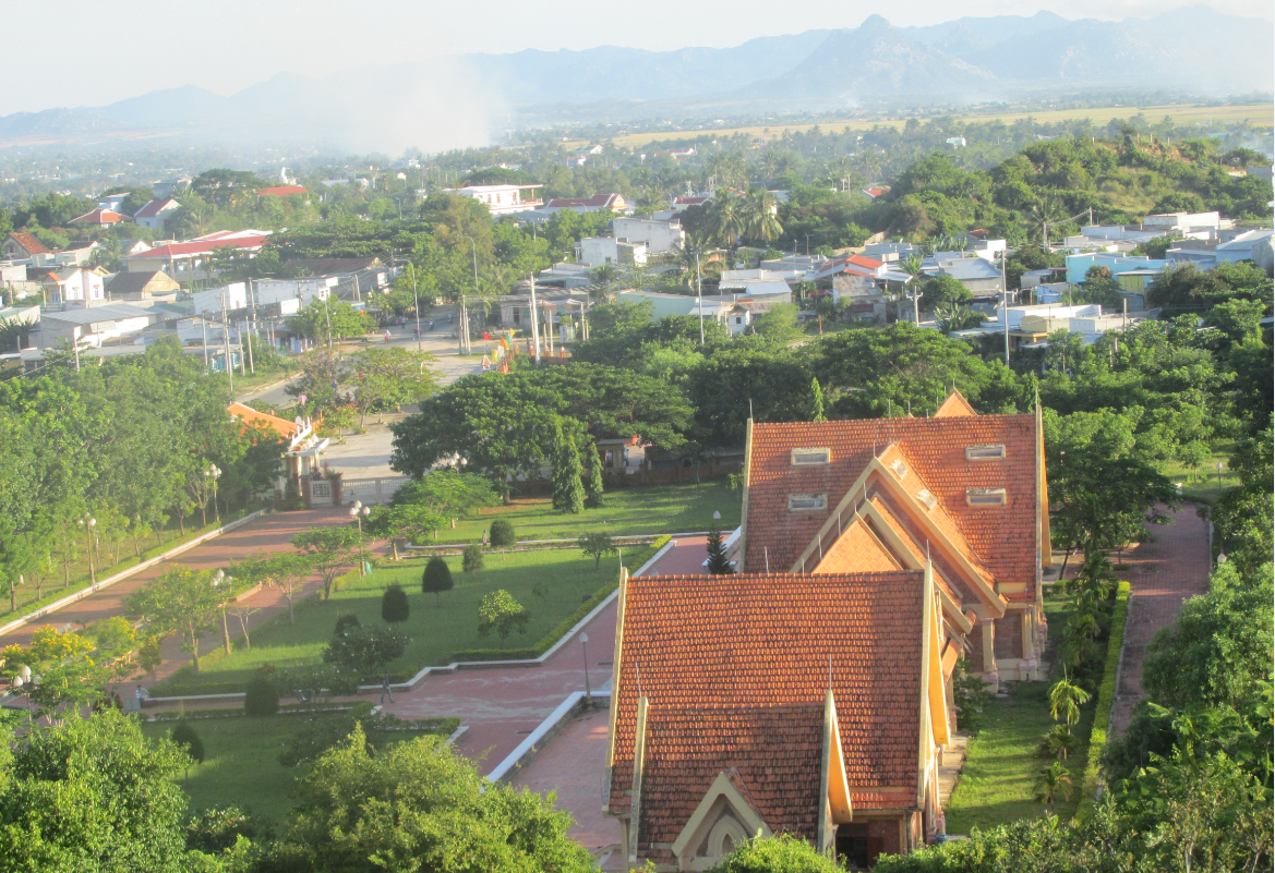 Đứng trên Tháp nhìn xuống bạn có thể nhìn được toàn cảnh ở khuôn viên phía dưới, những ngôi nhà, ngọn núi ở xa xa kia của Ninh Thuận như chỉ đang ở dưới chân của bạn mà thôi.