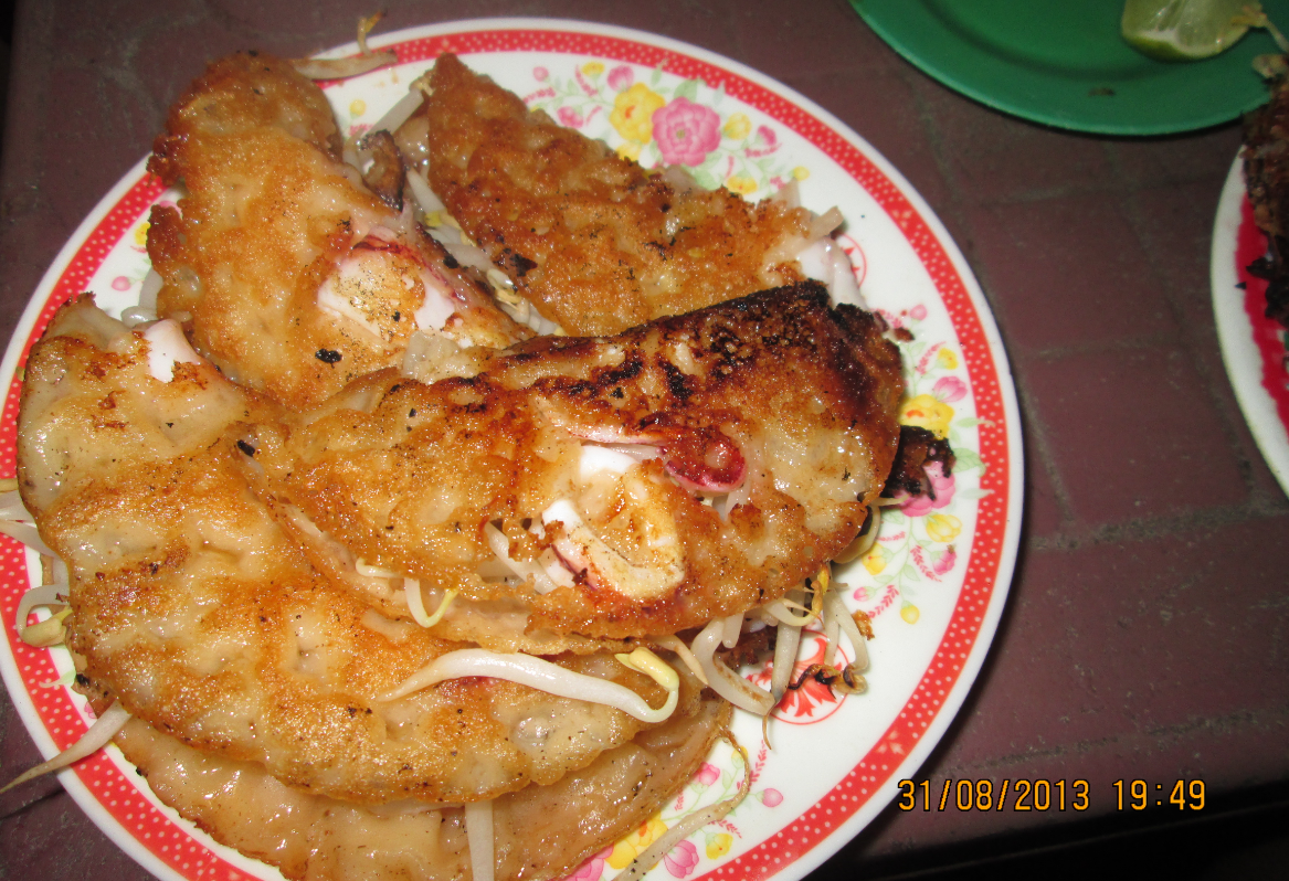 Đến tối cả đoàn cùng đi thưởng thức món bánh xèo, một trong những món đặc sản của Ninh Thuận. Bánh xèo ở đây rất thơm, ngồi ở bàn mà tôi vẫn nghe được mùi thơm thoang thoảng của bánh. Có lẻ mùi thơm của bánh đã lôi kéo các thực khách đến đây để thưởng thức. Màu sắc của bánh lại bắt mắt, độ béo của bánh vừa đủ, nhân bánh lại nhiều, độ tươi của hải sản trong bánh vẫn được giữ nguyên hương vị. Ăn một đĩa bánh không thấm tháp vào đâu.