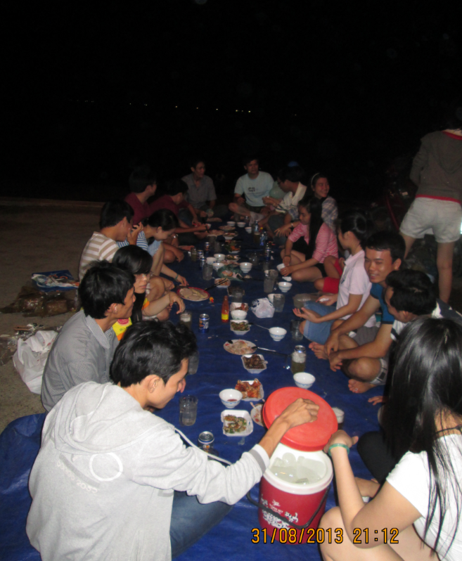 Xong món bánh xèo là chúng tôi trở về khách sạn, ra bãi biển dùng bữa ăn khuya “Hải sản Ninh Thuận” và chơi trò chơi giành giải thưởng.