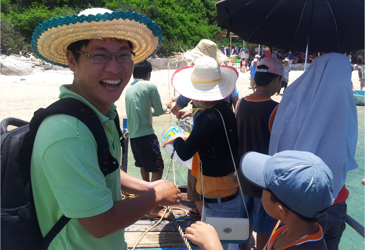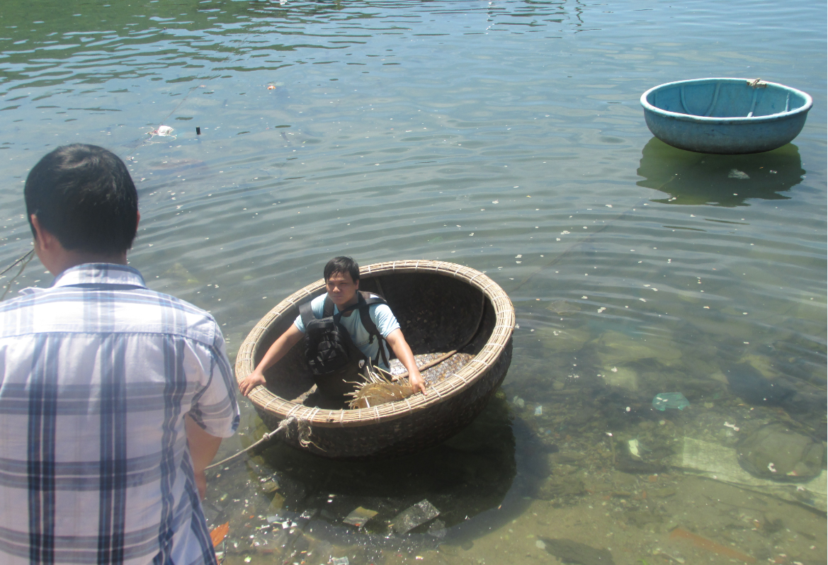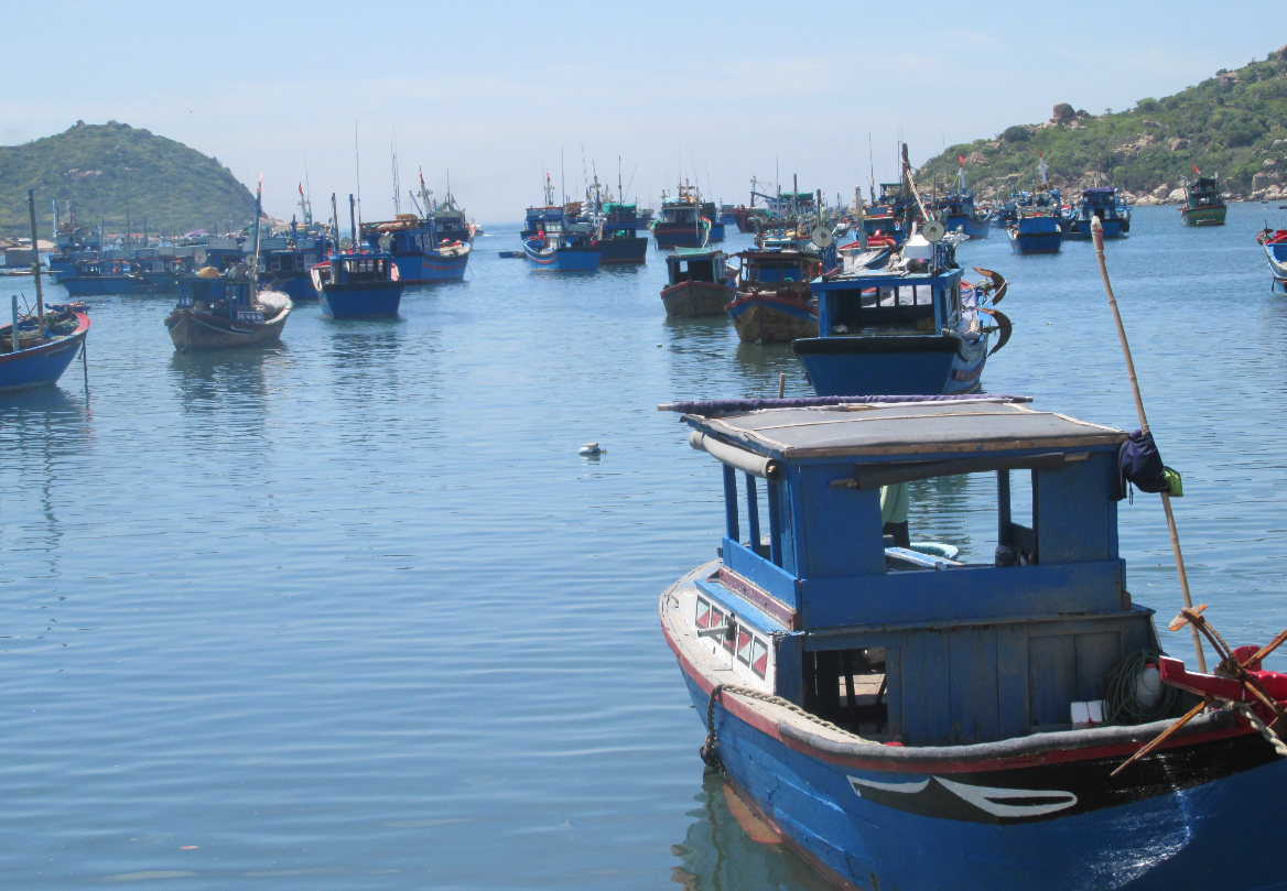 Muốn đến đảo Vĩnh Hy, chúng ta phải đi thuyền hoặc tàu nhỏ ra đó, vừa đi vừa ngắm cảnh. Lúc đầu chúng tôi định chèo thúng ra đảo Vĩnh Hy, nhưng không được, chúng tôi phải quay lại đi tàu.